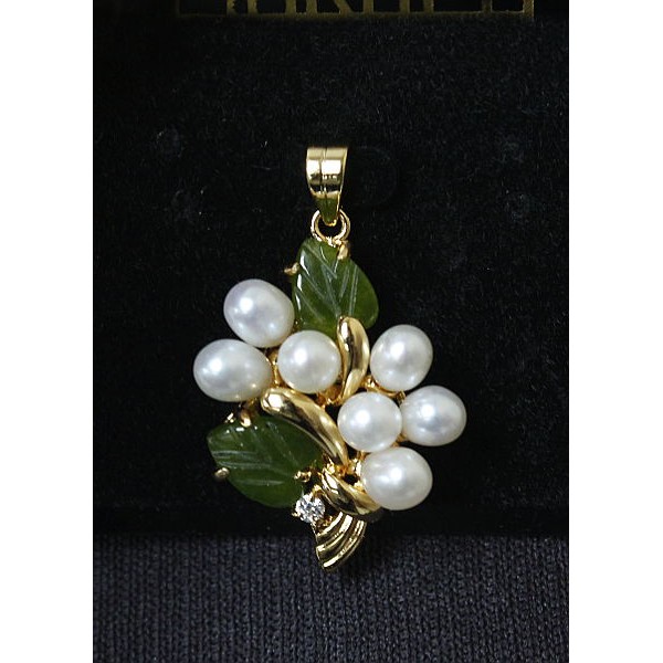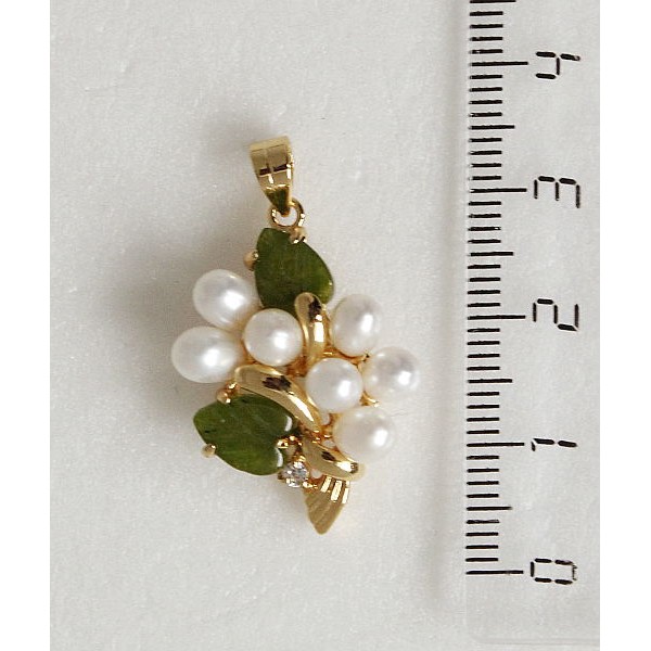 Кулон из жемчуга белого и нефрита "7 жемчужин букет"