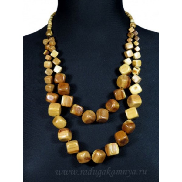 Украшения из дерева - Колье 2нити кубик, 60см
