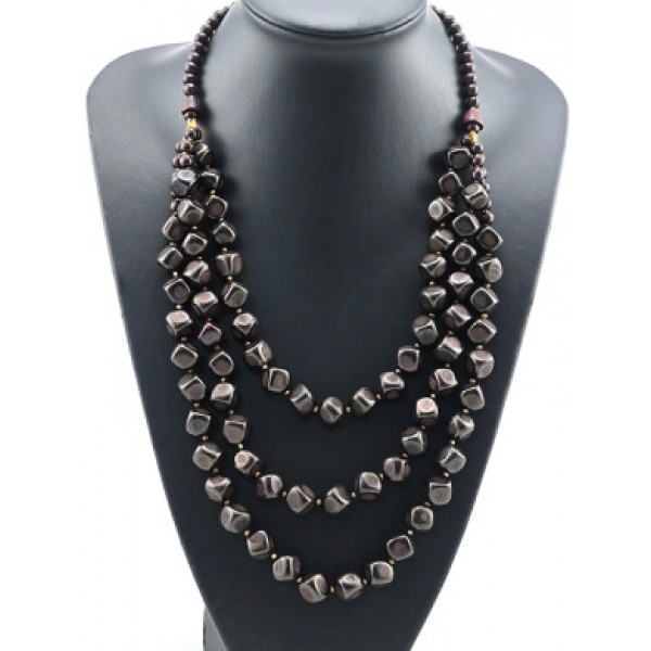 Украшения из дерева Колье 3 нити, кубик 10мм, 53см