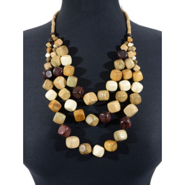 Украшения из дерева - Колье 3 нити кубик, 56см (иск.)