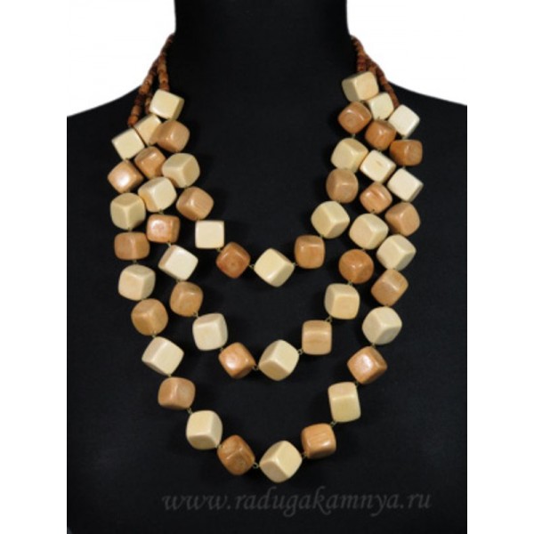 Украшения из дерева - Колье 3 нити кубик, 54см (иск.)