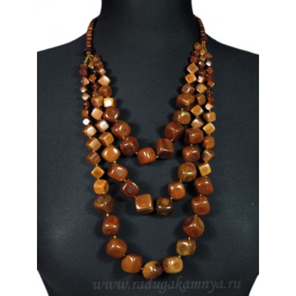 • Украшения из дерева - Колье 3 нити кубик, 58см (иск.)