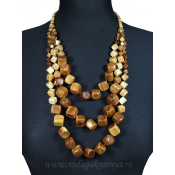 • Украшения из дерева - Колье 3 нити кубик, 58см (иск.)