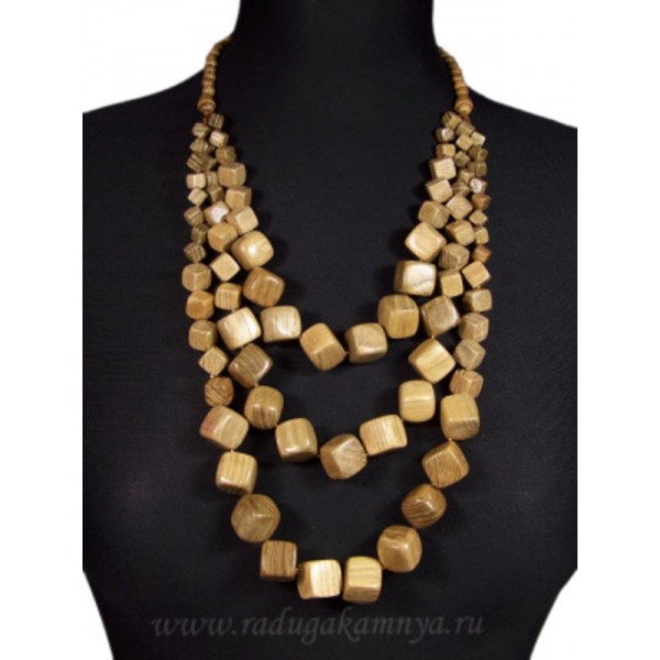 • Украшения из дерева - Колье 3 нити кубик, 58см (иск.)
