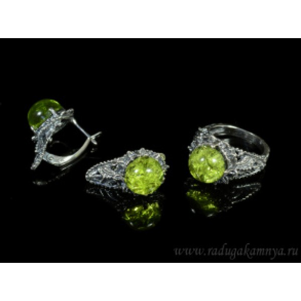 Набор с янтарём буранит кольцо, серьги 15*26мм, (иск.)