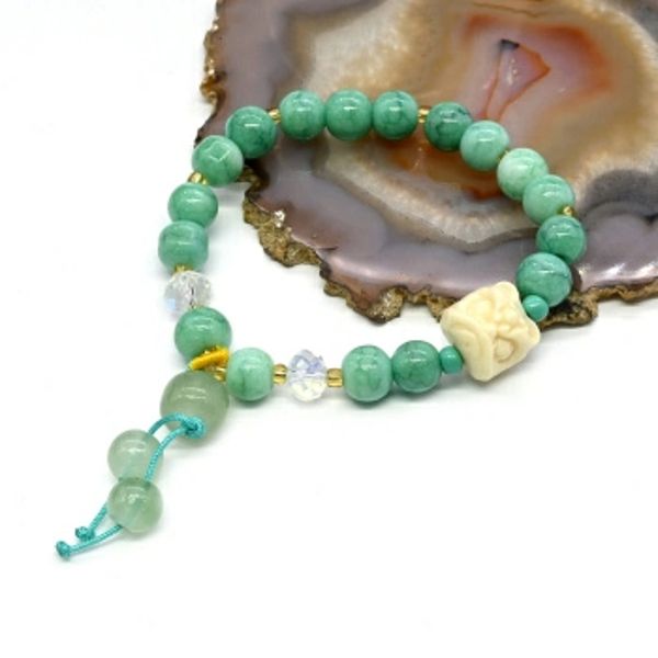 Браслет Голова Льва шарик 8мм цвет мятный, 17см (иск.)