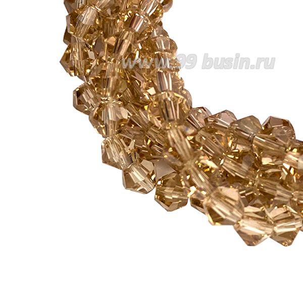 Бусина хрустальная биконус 4,5 мм бежевый длина нити около 34 см/90 штук