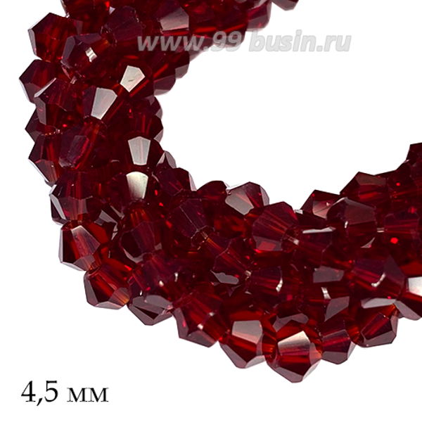 Бусина хрустальная биконус 4,5 мм прозрачный темно-рубиновый нить ок. 36 см/95 штук