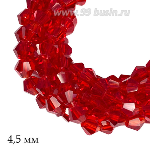 Бусина хрустальная биконус 4,5 мм прозрачный темно-красный нить ок. 36 см/95 штук