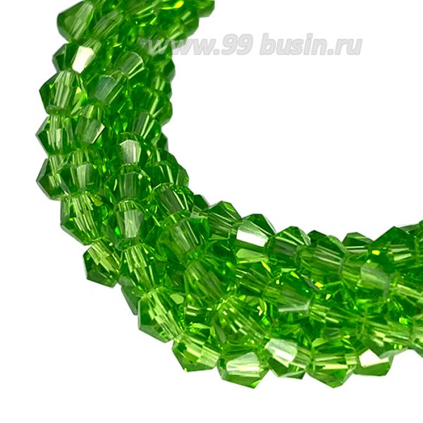 Бусина хрустальная биконус 4,5 мм прозрачный светло-зеленый нить ок. 38 см