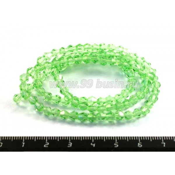 Бусина хрустальная биконус 4 мм светлый зеленый нить ок. 32 см
