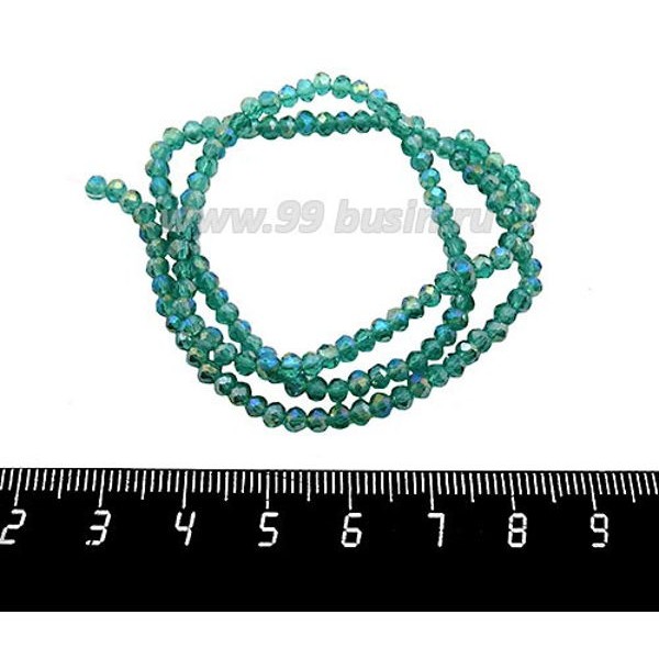 Бусины хрустальные на нити форма Рондель 3,5*2,5 мм изумрудный радужный, около 36 см нить /145 бусин