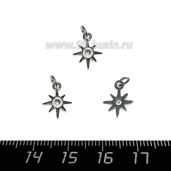 Подвеска Премиум Звёзда с 1 цирконом 12*10 мм, родированная 1 штука