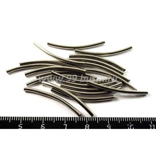 Бусина трубочка латунь, дуга, 20мм (отв-е 1,5мм), цвет платина