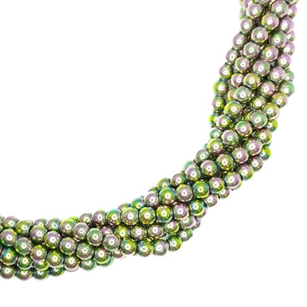 Натуральный камень ГЕМАТИТ бусины круглые 3 мм, цвет блестящие розово-зеленый мультиколор, около 40 см/нить
