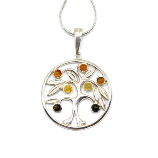 • Кулон с янтарём в посеребрении Яблоня 31*34мм цвет ассорти