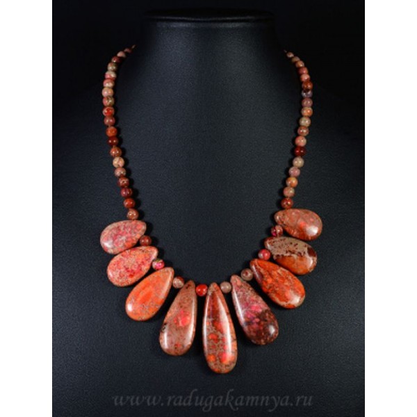 Колье из варисцита капля цвет оранжевый2, 47см