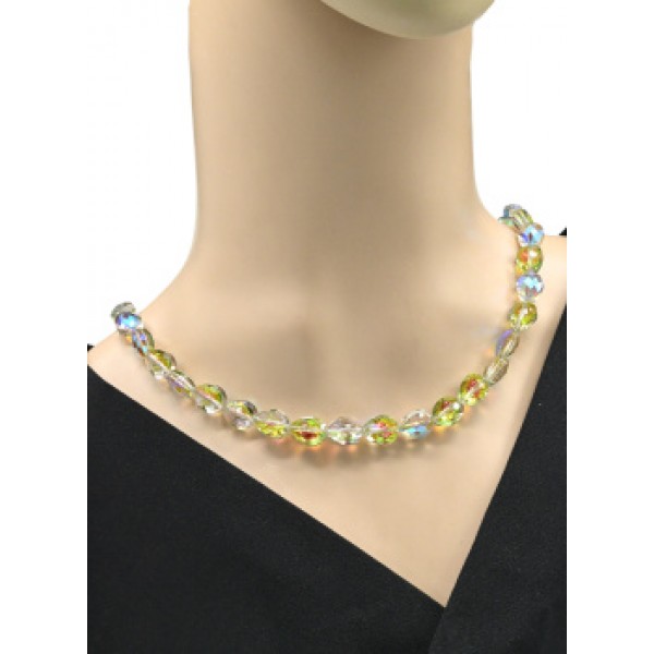 Бусы из циркона капля 9*12мм цвет зеленый хамелеон, 46см (иск.)