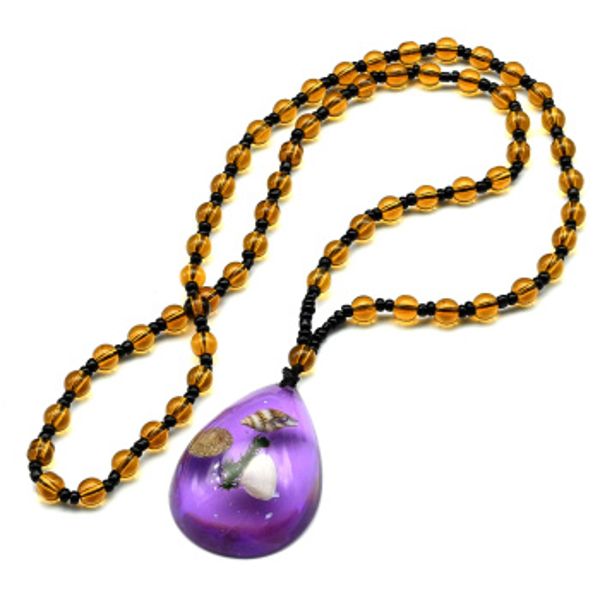 Бусы из янтаря искусственного с подвеской капля 34*47мм, цвет фиолетовый, 62см