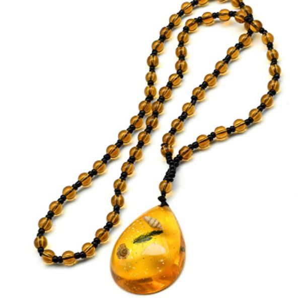 Бусы из янтаря искусственного с подвеской капля 34*47мм цвет желтый, 62см