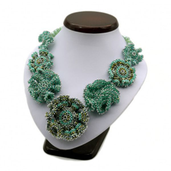 • Колье с цирконом и бисером цвет  зеленый, 48см