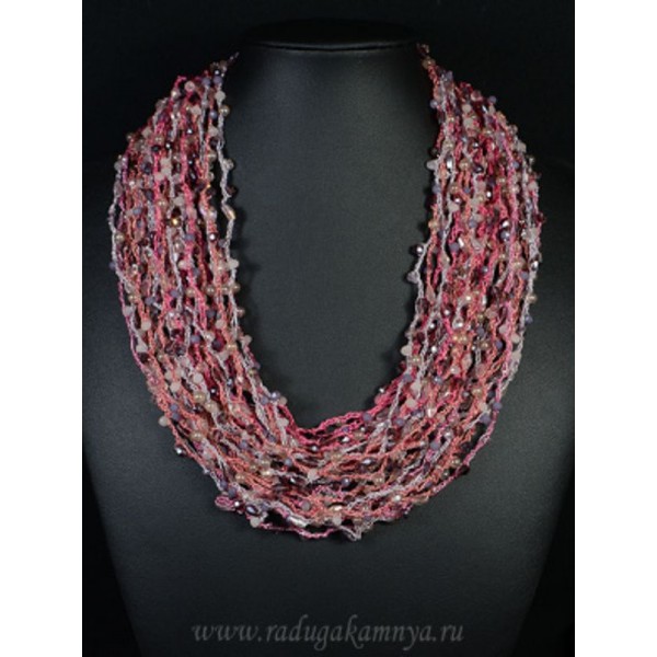 • Колье ручной работы с цирконами цвет розово-сиреневый, 48см