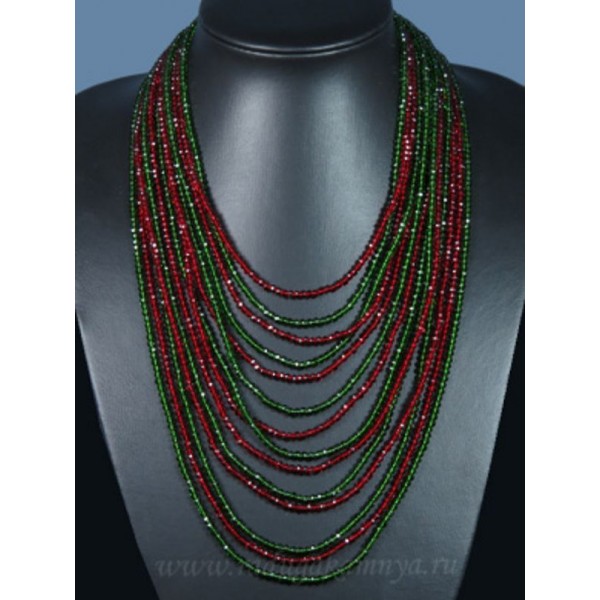• Колье из циркона  14 нитей красный,зеленый,  44см