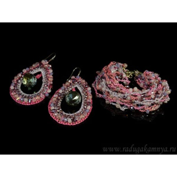 • Браслет и Серьги ручной работы с цирконами цвет  розово-сиреневый, 19см