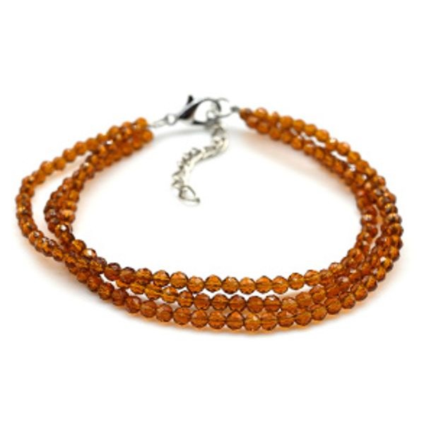 Браслет из циркона 3 нити шарик гр.3мм цвет коньячный, 19см