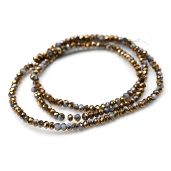 • Бусины из циркона рондель гр.3мм цвет серо-золотистый, 41см, 170 бусин (иск.)