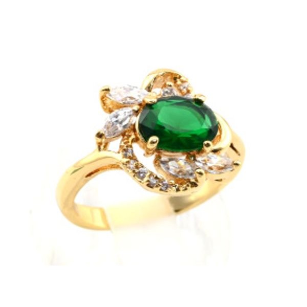 Кольцо позолота циркон зелёный со стразами, (иск.)