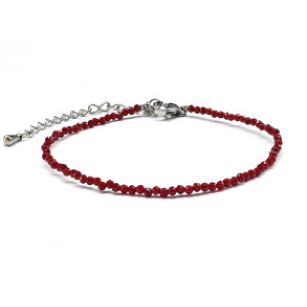 • Браслет из граненых бусин мелких 2мм циркон цвет бордовый, 17см (иск.)