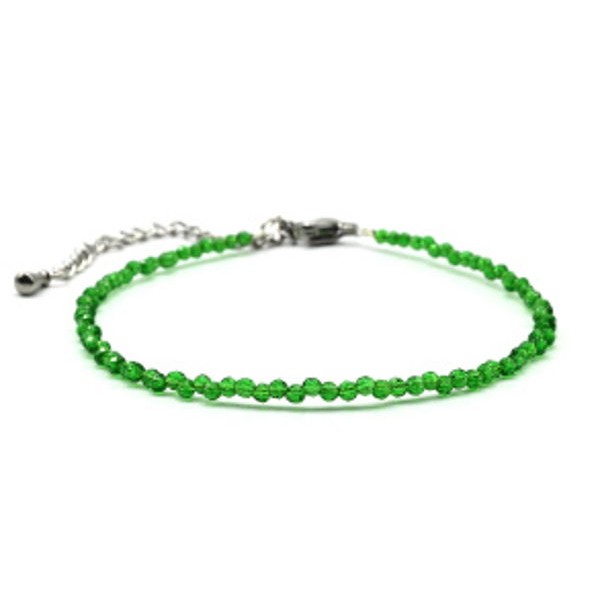 Браслет из граненых бусин мелких 2мм циркон цвет зеленый, 17см (иск.)