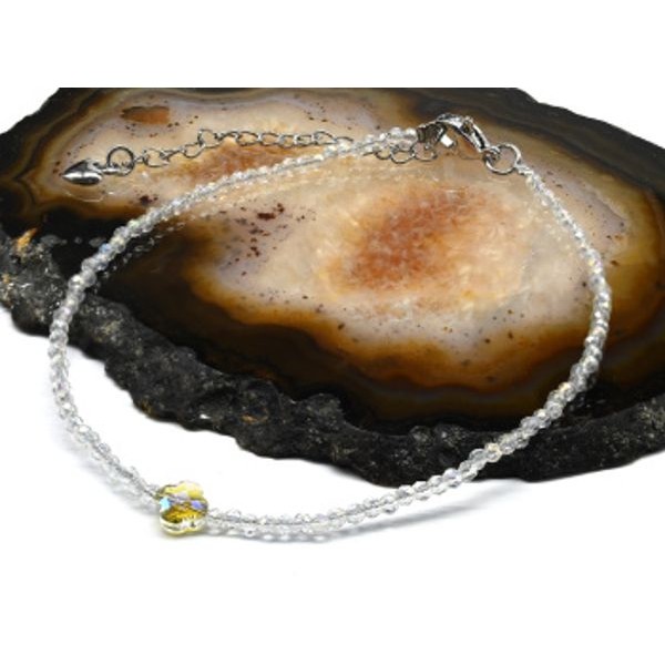 Браслет на ногу из циркона шарик гр.2мм, цвет хрусталь хамелеон, 21см (иск.)