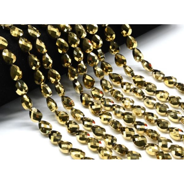 Бусины из циркона капля 12*6мм цвет золотистый, 41см, 97 бусин