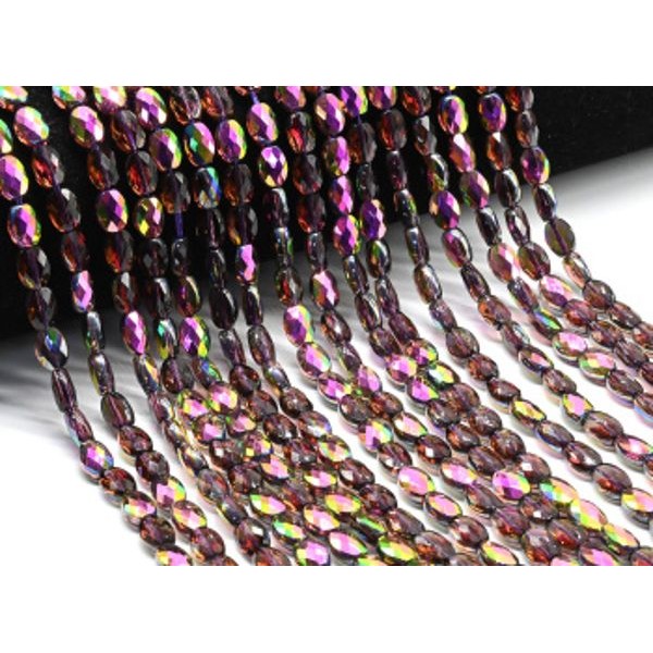 • Бусины из циркона овал гр.6*8мм цвет фиолетовый хамелеон, 40см, 48 бусин (иск.)