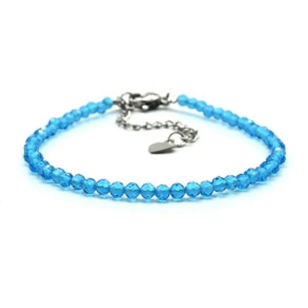 Браслет из циркона шарик гр.3мм цвет голубой, 17см (иск.)