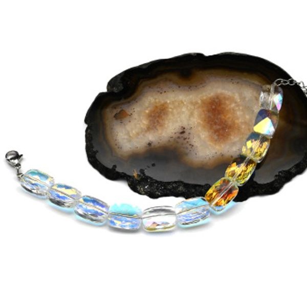 Браслет из циркона прямоугольник 10*14мм, цвет хрусталь хамелеон, 18см (иск.)