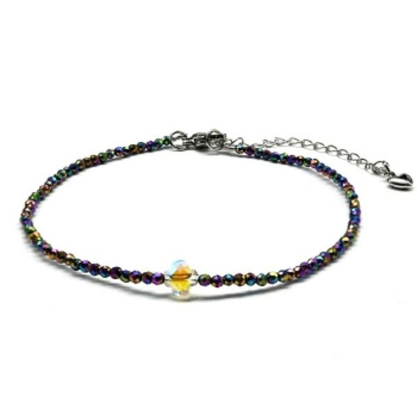 Браслет на ногу из циркона шарик гр.2мм, цвет хамелеон, 21см (иск.)