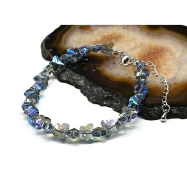 Браслет из циркона бабочка 6*8мм цвет синий, 18см (иск.)