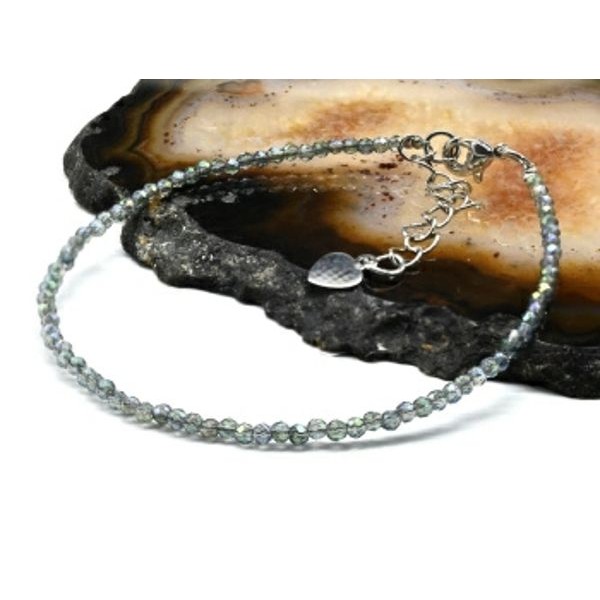 Браслет из циркона шарик гр.2мм цвет сизый хамелеон, 19см (иск.)