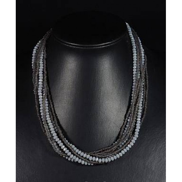 • Бусы из циркона с бисером 9 нитей цв.серый, 48см