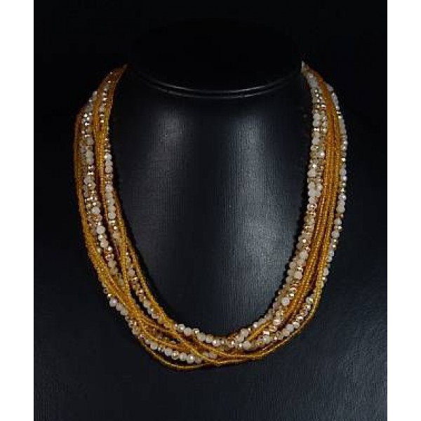 Бусы из циркона с бисером 9 нитей цв.сепия, 48см