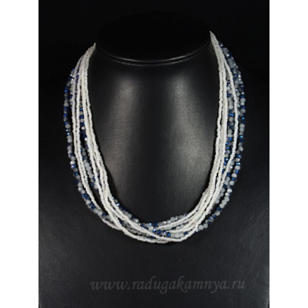 Бусы из циркона с бисером 9 нитей цвет сине-белый, 48см