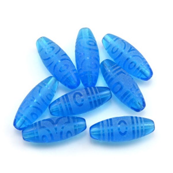 Бусина Дзи "Три глаза" из горного хрусталя тонированного 10*30мм, цвет голубой, 1 бусина