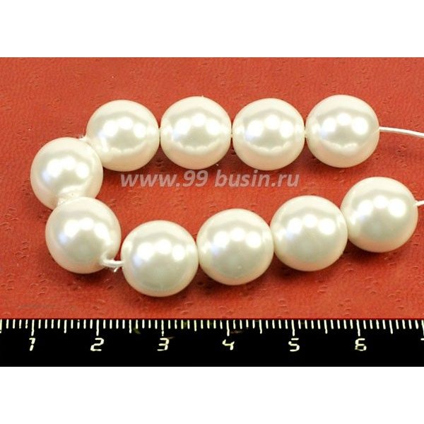 Бусина стеклянная жемчуг на нити 12 мм цвет белый Чехия 10 штук /упаковка