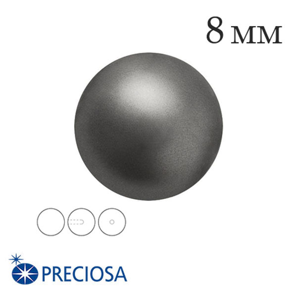 Жемчуг хрустальный Preciosa с несквозным полуотверстием 8 мм Dark Grey 1 штука Чехия