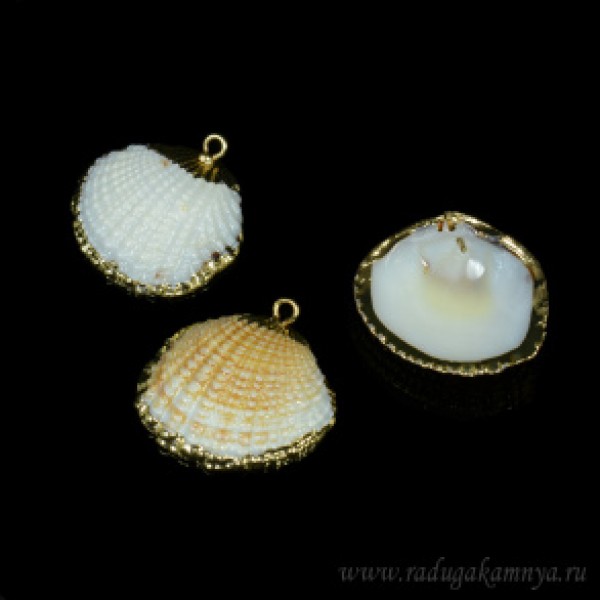 Кулон из перламутра ракушка 25*23мм цвет белый с золотом