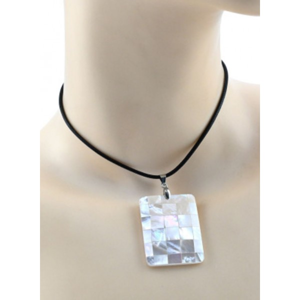 Кулон из белого перламутра мозаика прямоугольник 30*40мм, 45см