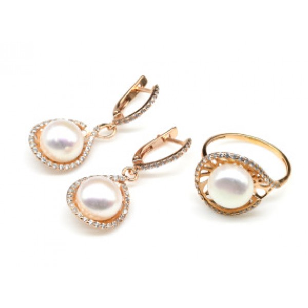 Кольцо и серьги с925 позолота и жемчугом 13*21мм , 7,3гр